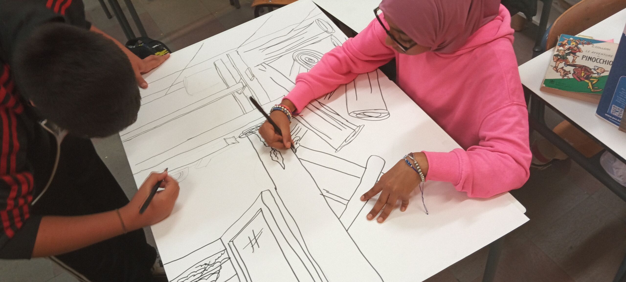 Questa fantastica introduzione per raccontarvi cosa succede al laboratorio di Arte e Creatività di Futuropresente, tenuto da Sandra Cerbolini dell’associazione Cardpaperart. Il laboratorio, incentrato sulla storia di Pinocchio, coinvolge 11 tra ragazzi e ragazze che frequentano la scuola media, e si tiene ogni martedì pomeriggio nell’aula di artistica della scuola “Dante Alighieri” di Quarrata. Al laboratorio vengono messe in campo svariate tecniche legate all’arte e alla creatività (pittoriche, teatrali…) al fine di dare sfogo alla fantasia e alla voglia di sperimentare, allenando il pensiero divergente.