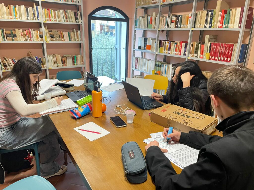 Per chi frequenta invece il triennio delle superiori, c’è Spazio Biblioteca, un laboratorio di supporto scolastico in cui gli studenti possono studiare insieme ma in modo autonomo, ricevendo l’affiancamento degli educatori solo se serve.